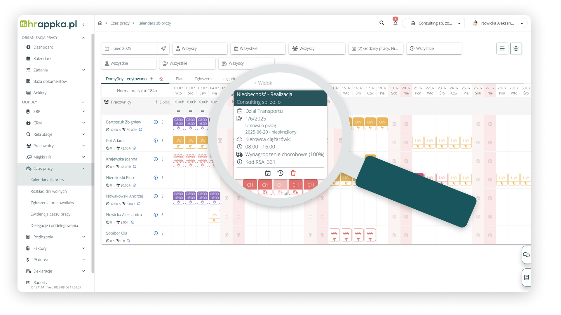 System HRappka zintegrowany jest z Platformą Usług Elektronicznych (PUE) ZUS. Dzięki temu pracodawca ma możliwość pobrania elektronicznych zwolnień lekarskich swoich pracowników oraz automatycznego dodania ich na grafiki pracy. Jest to ogromne ułatwienie i oszczędność czasu, szczególnie w organizacjach, które zatrudniają wielu pracowników. Dzięki takiej integracji nie ma potrzeby ręcznego wprowadzania danych. System sam zaciąga wszystkie informacje, a pracodawca i działy kadr widzą gotowy grafik pracy na następne dni.