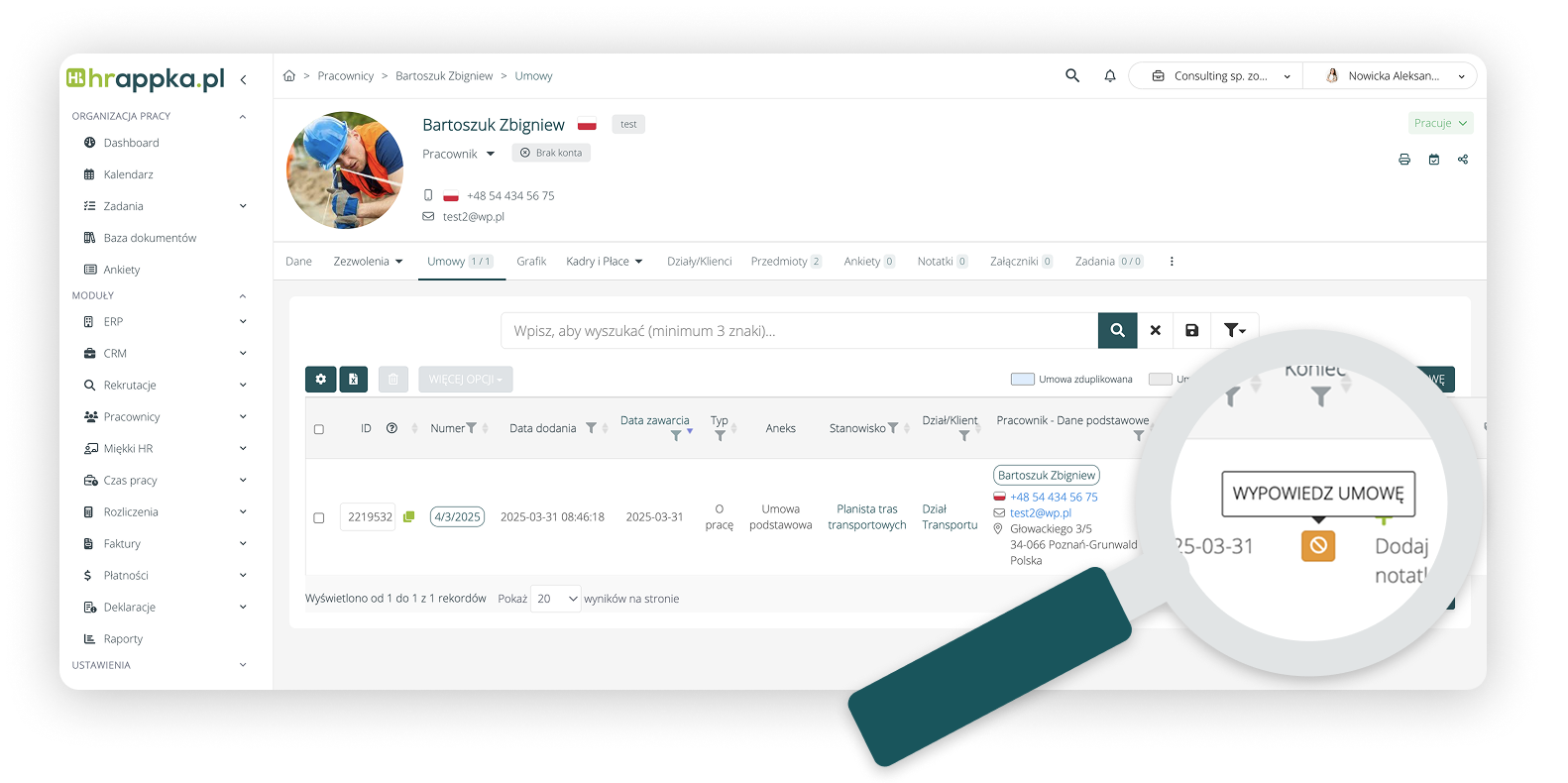Wypowiedzenie umowy w systemie HRappka