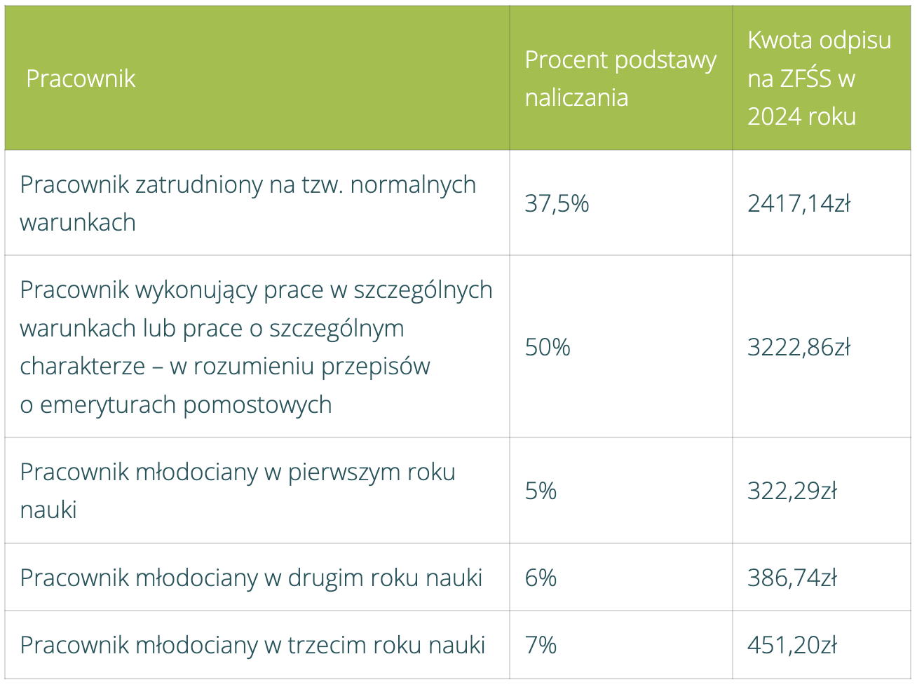 Podstawowe odpisy na ZFŚS w 2024 r. wynoszą: