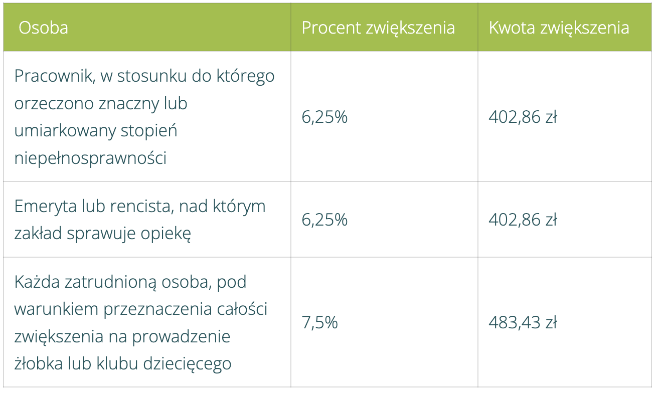 - każdego pracownika ze znacznym lub umiarkowanym stopniem niepełnosprawności o 6,25%