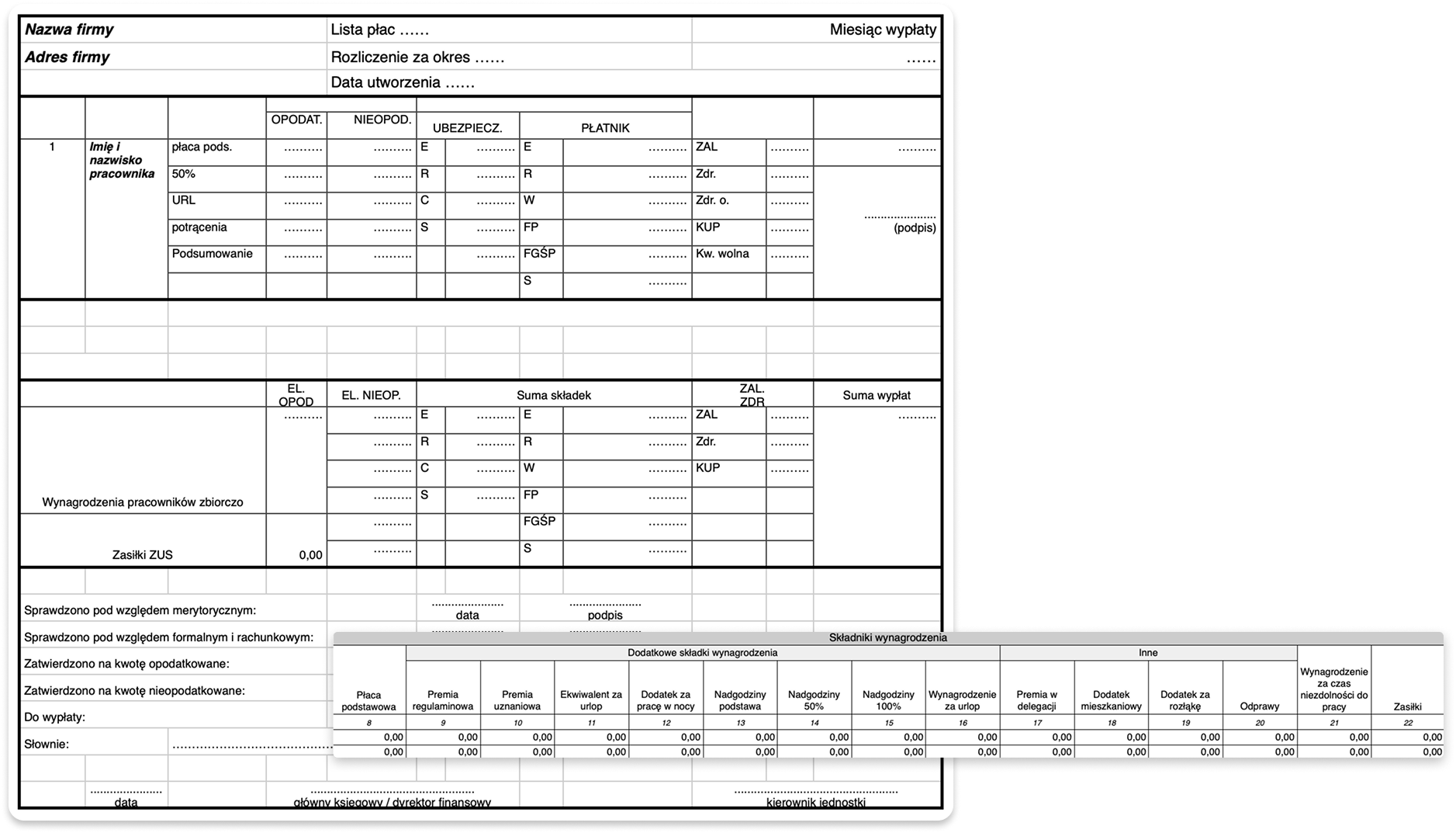 • wzór indywidualnej listy płac – do rozliczenia pojedynczego pracownika