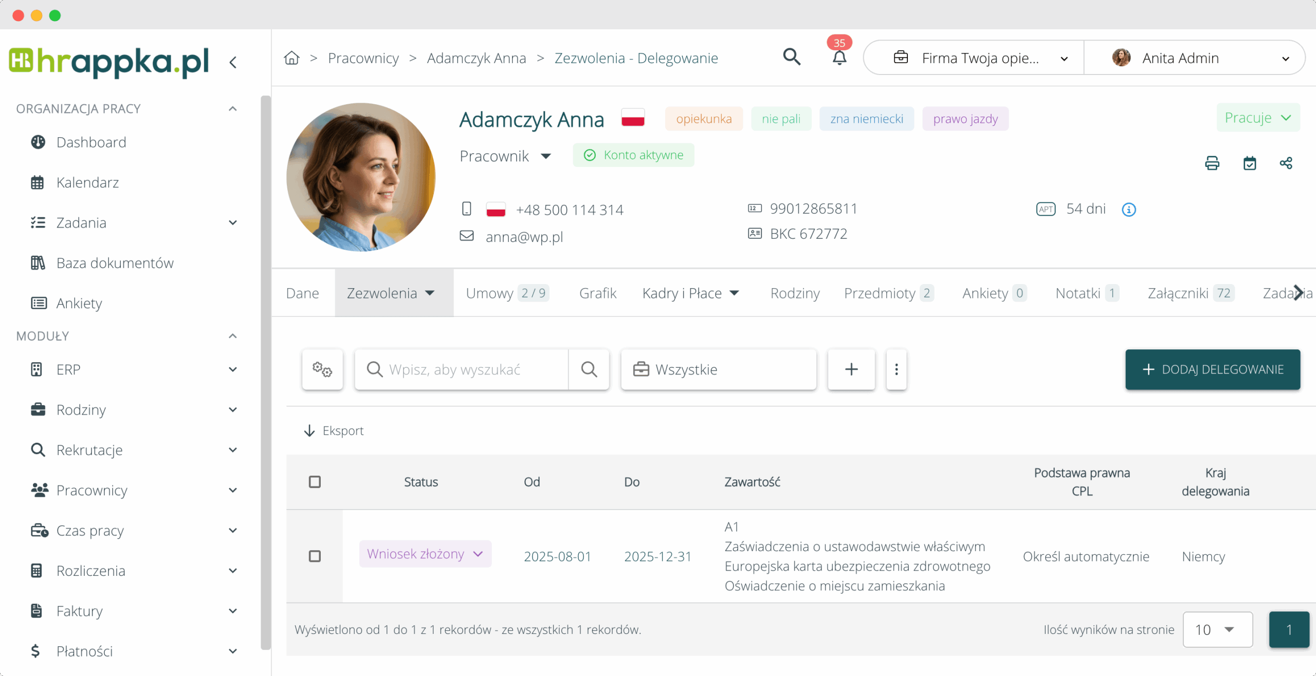 Dodatkowo, wspiera on organizację wyjazdów, ułatwia przydzielanie opiekunów do rodzin oraz zapewnia zgodność z wymogami RODO – co ma kluczowe znaczenie przy przekazywaniu wrażliwych danych biznesowych, np. do niemieckich agencji pośrednictwa.