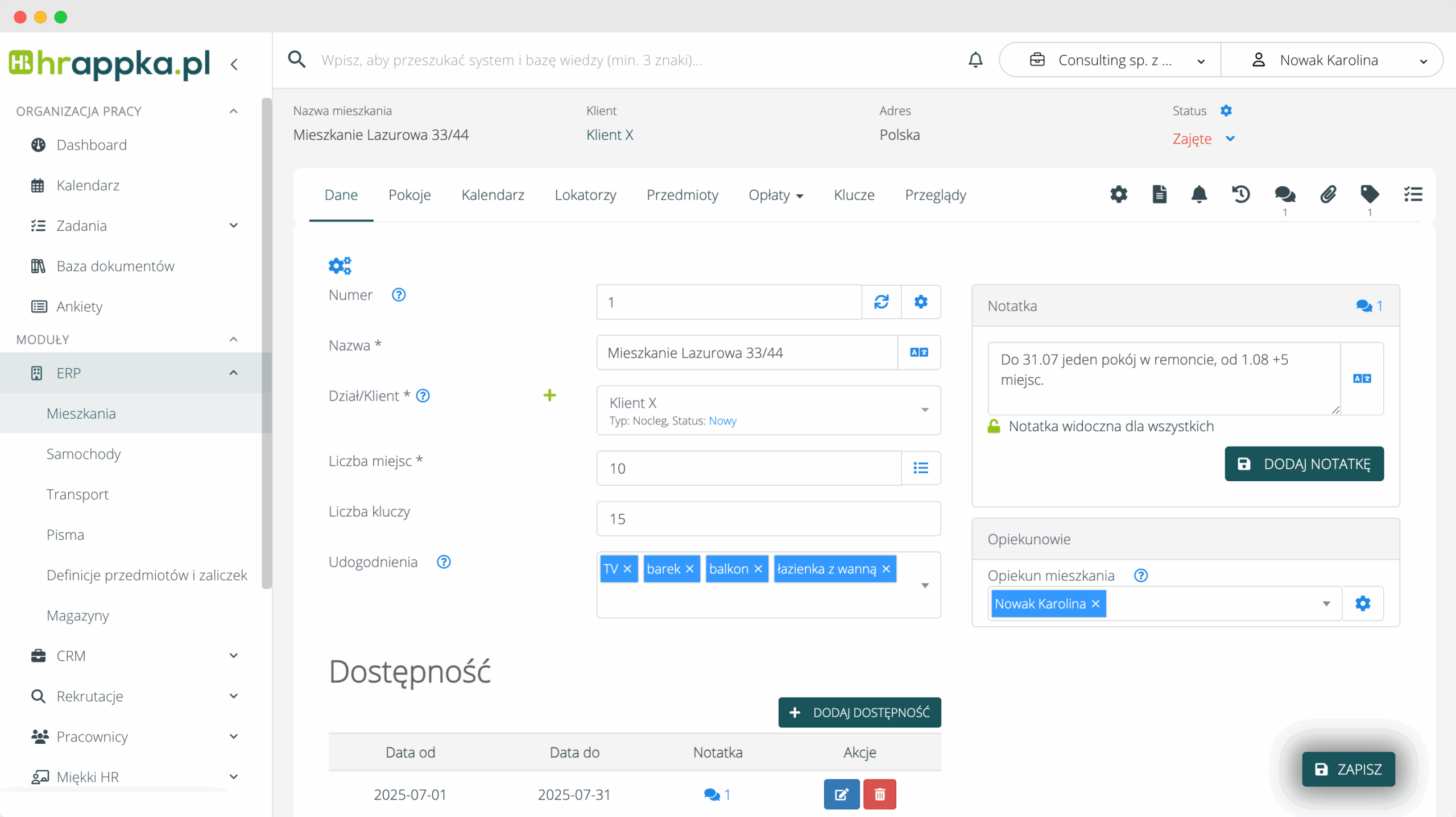 Mieszkania w systemie HRappka - dodawanie wpisu